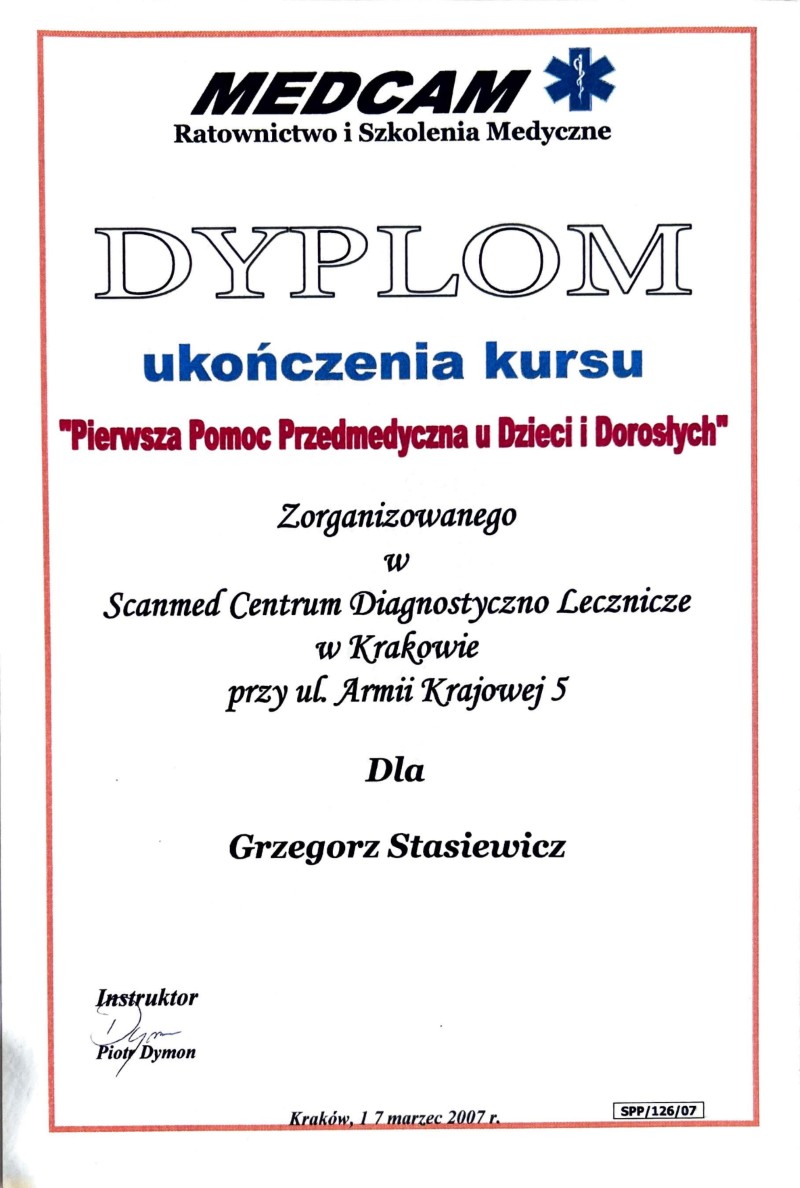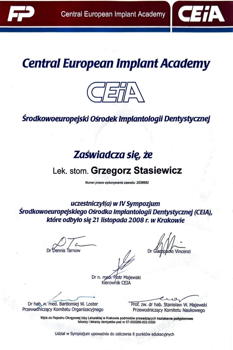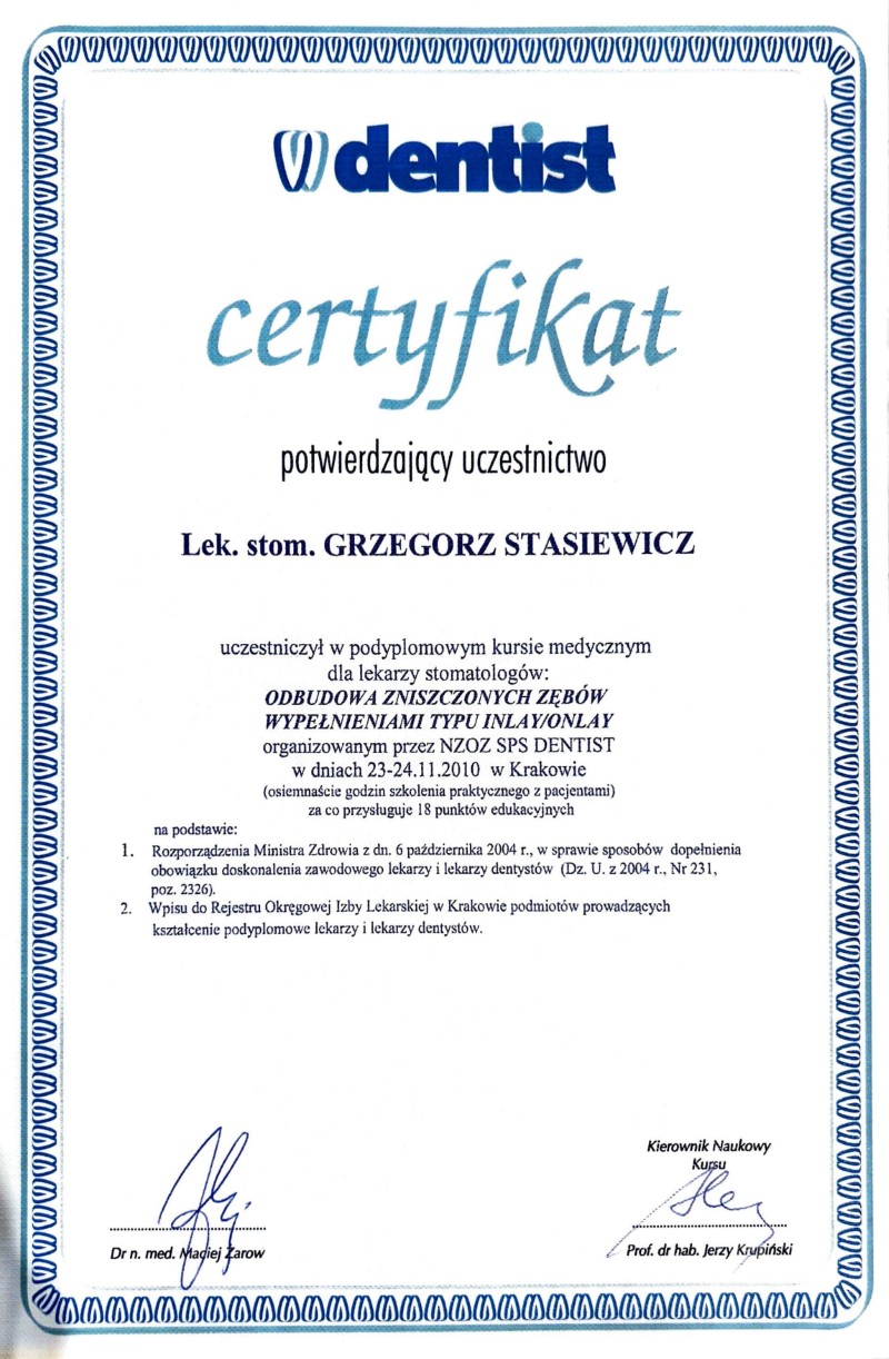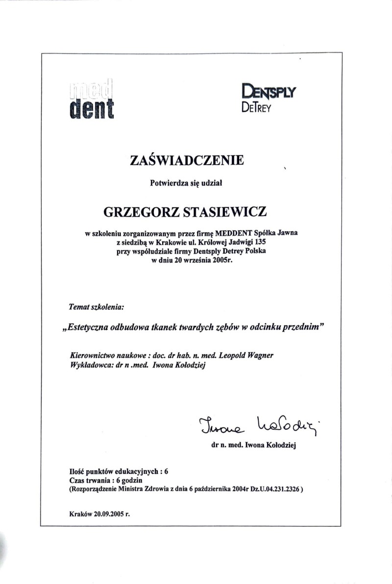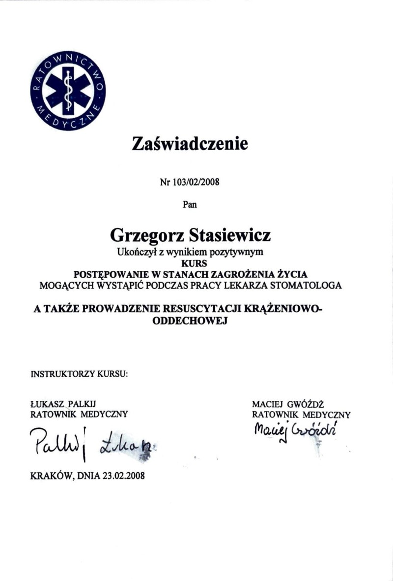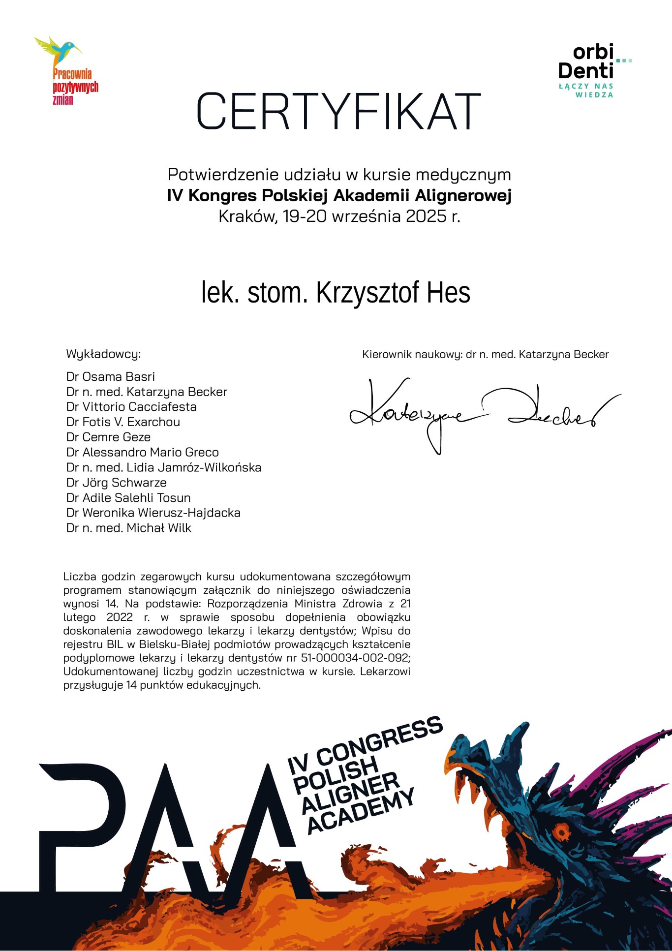 Absolwent Oddziału Stomatologii Wydziału Lekarskiego Collegium Medicum Uniwersytetu Jagiellońskiego w Krakowie 2008r.