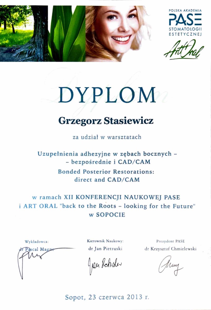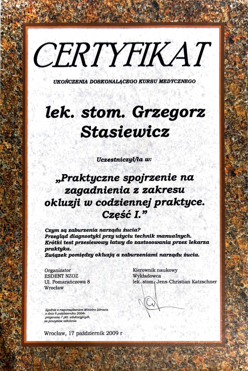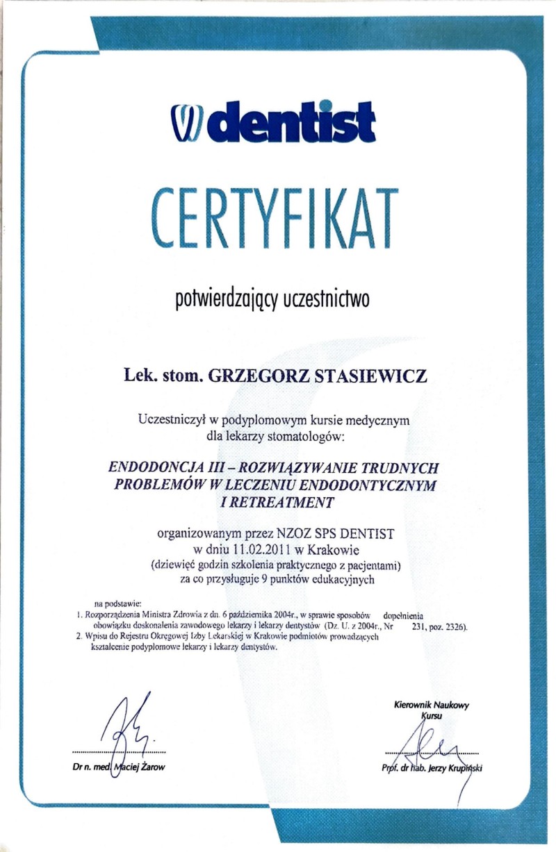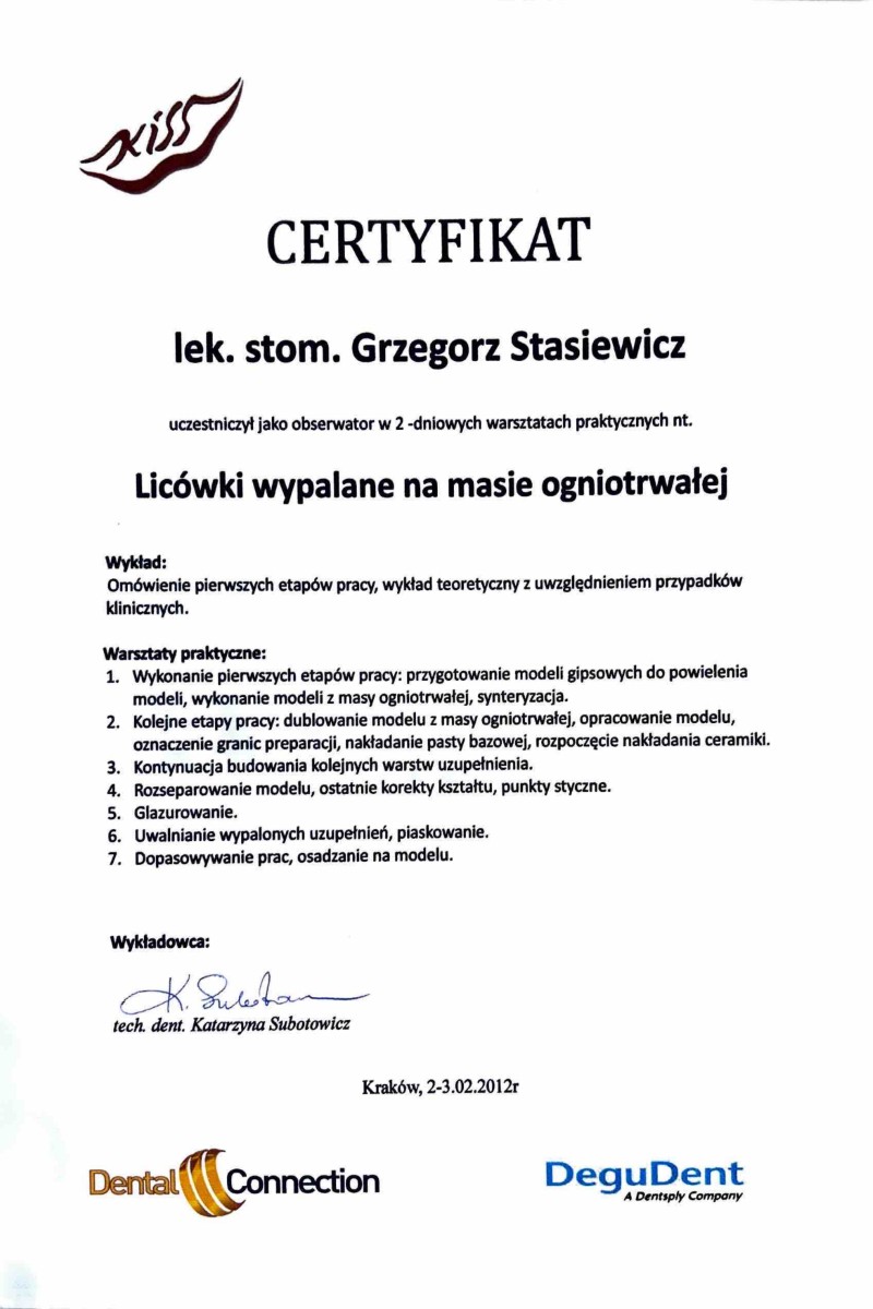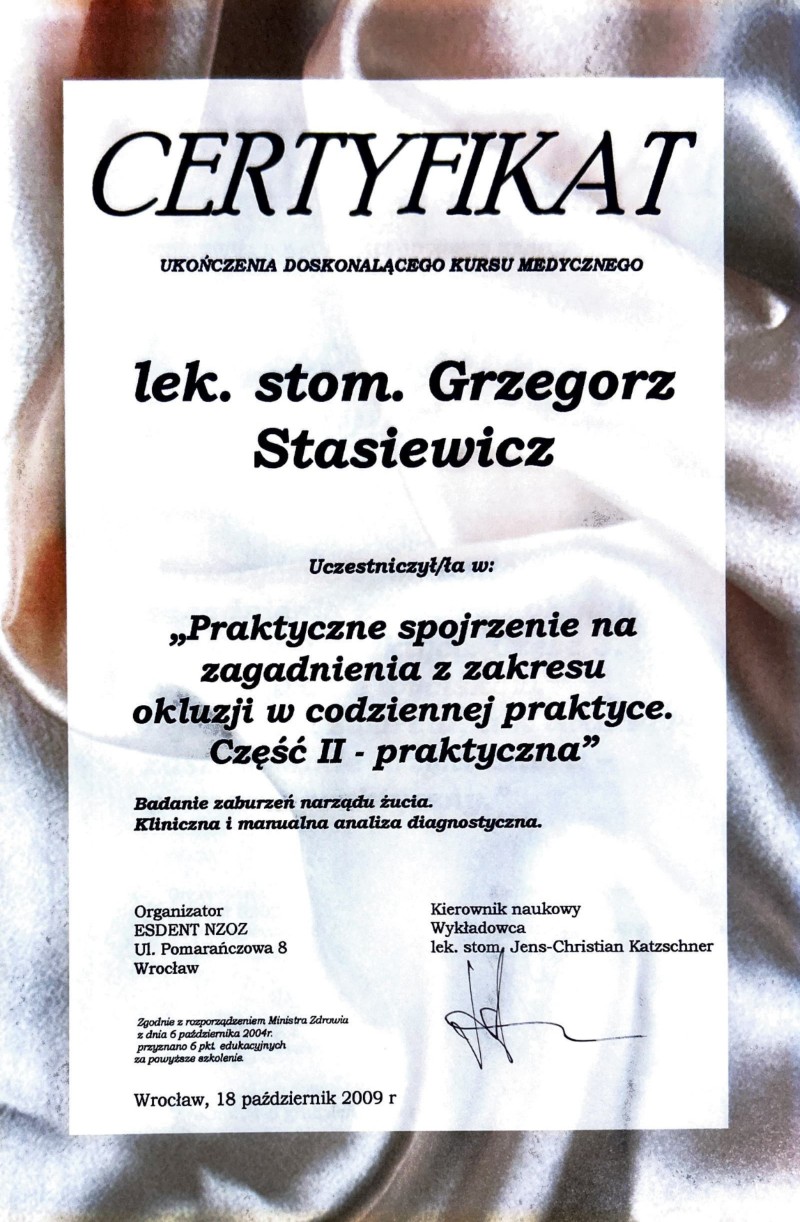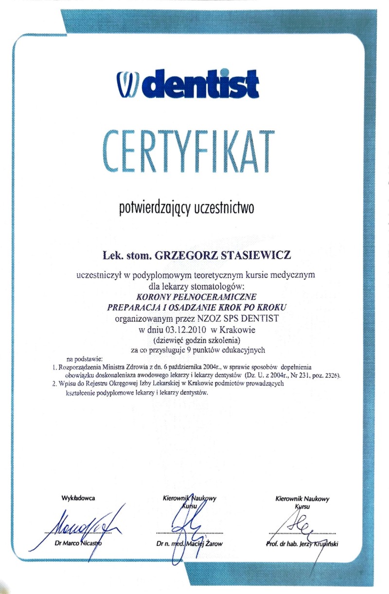 Absolwent Oddziału Stomatologii Wydziału Lekarskiego Collegium Medicum Uniwersytetu Jagiellońskiego w Krakowie 2008r.