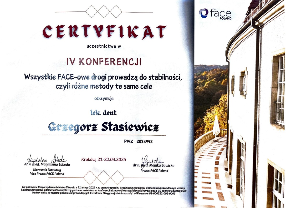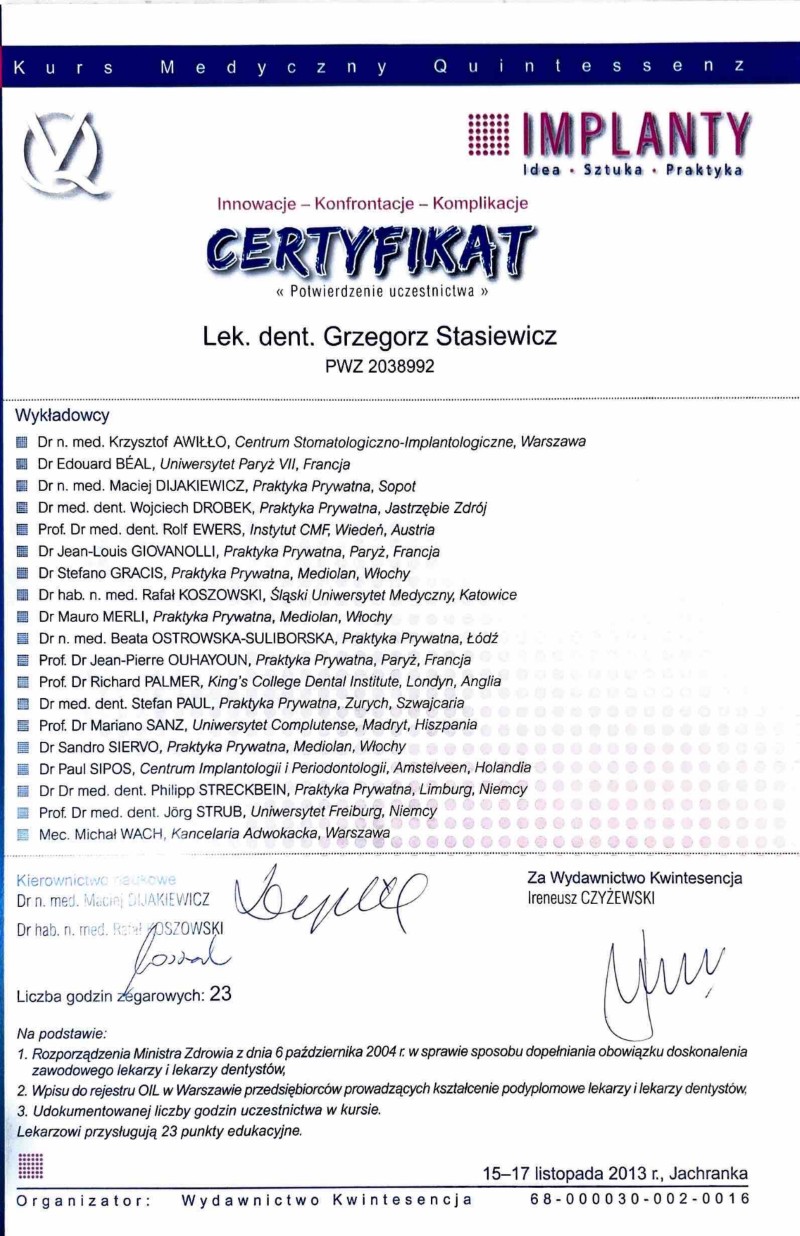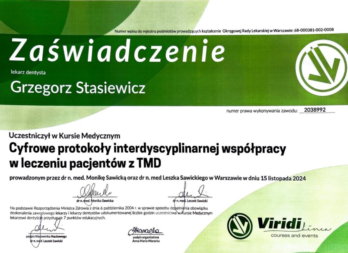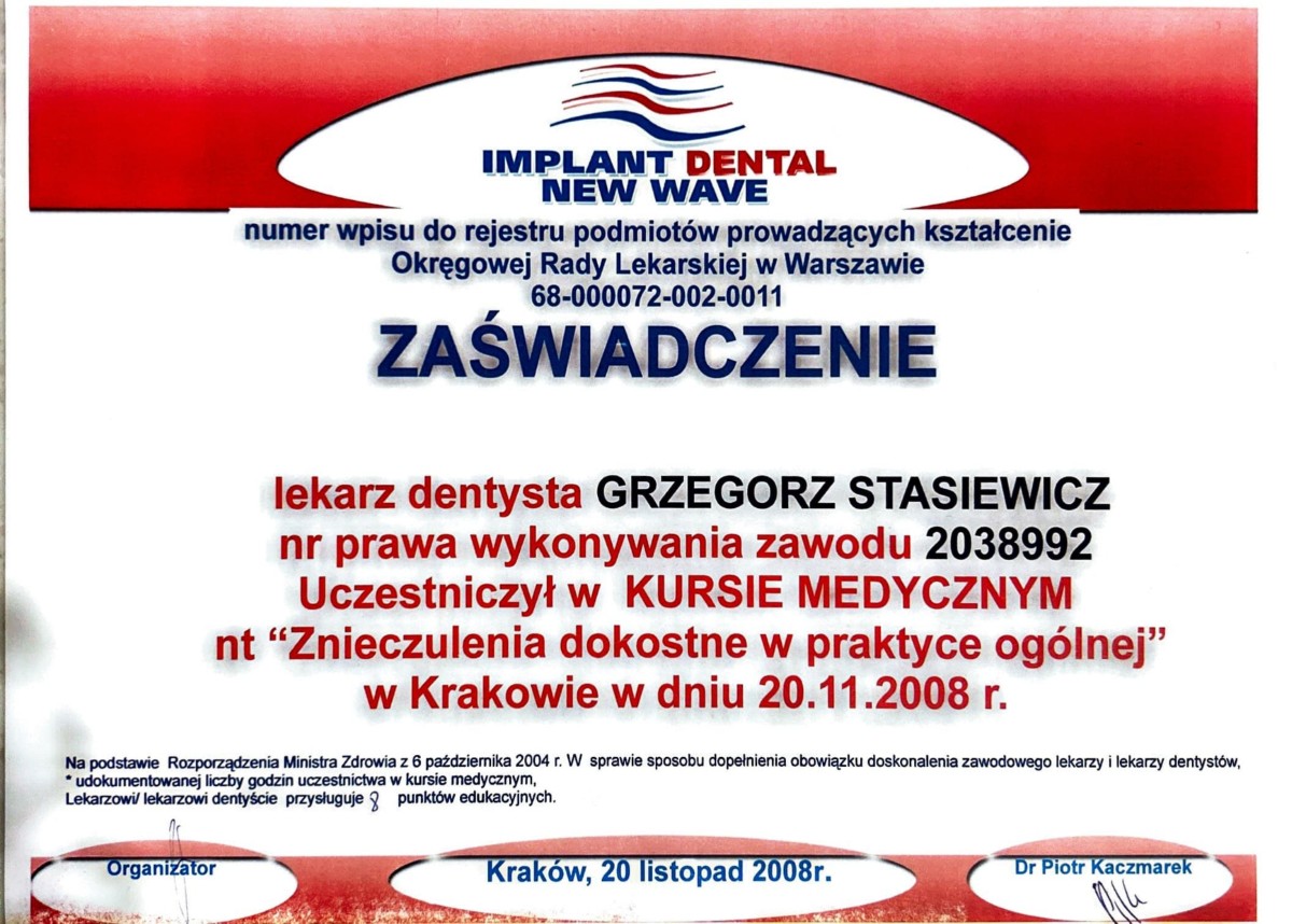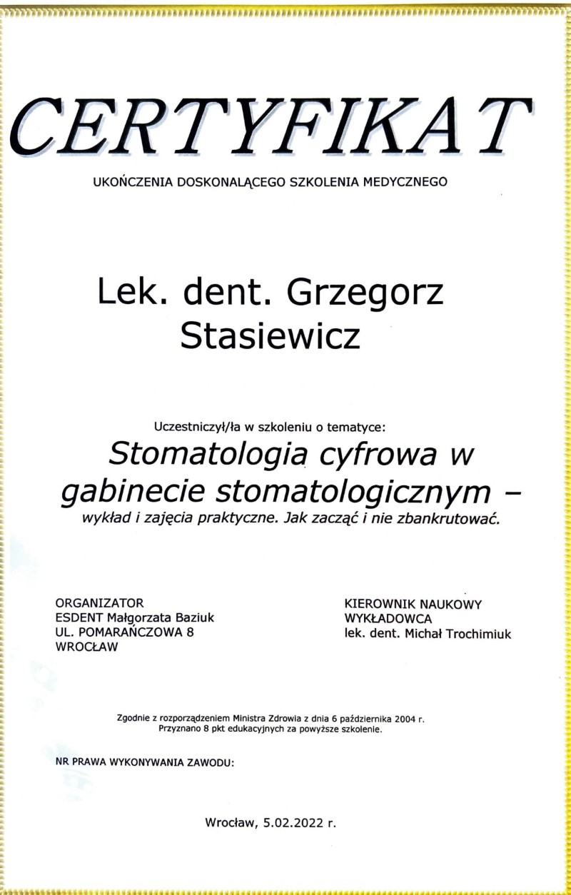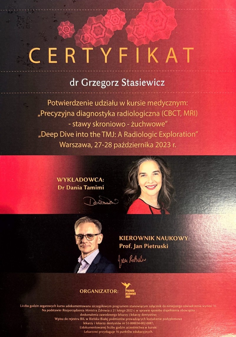 Jestem członkiem towarzystw chirurgii stomatologicznej oraz wielu grup dyskusyjnych zrzeszających chirurgów stomatologicznych, pozwalających na bieżąco aktualizować najwyższe standardy w chirurgii jamy ustnej.