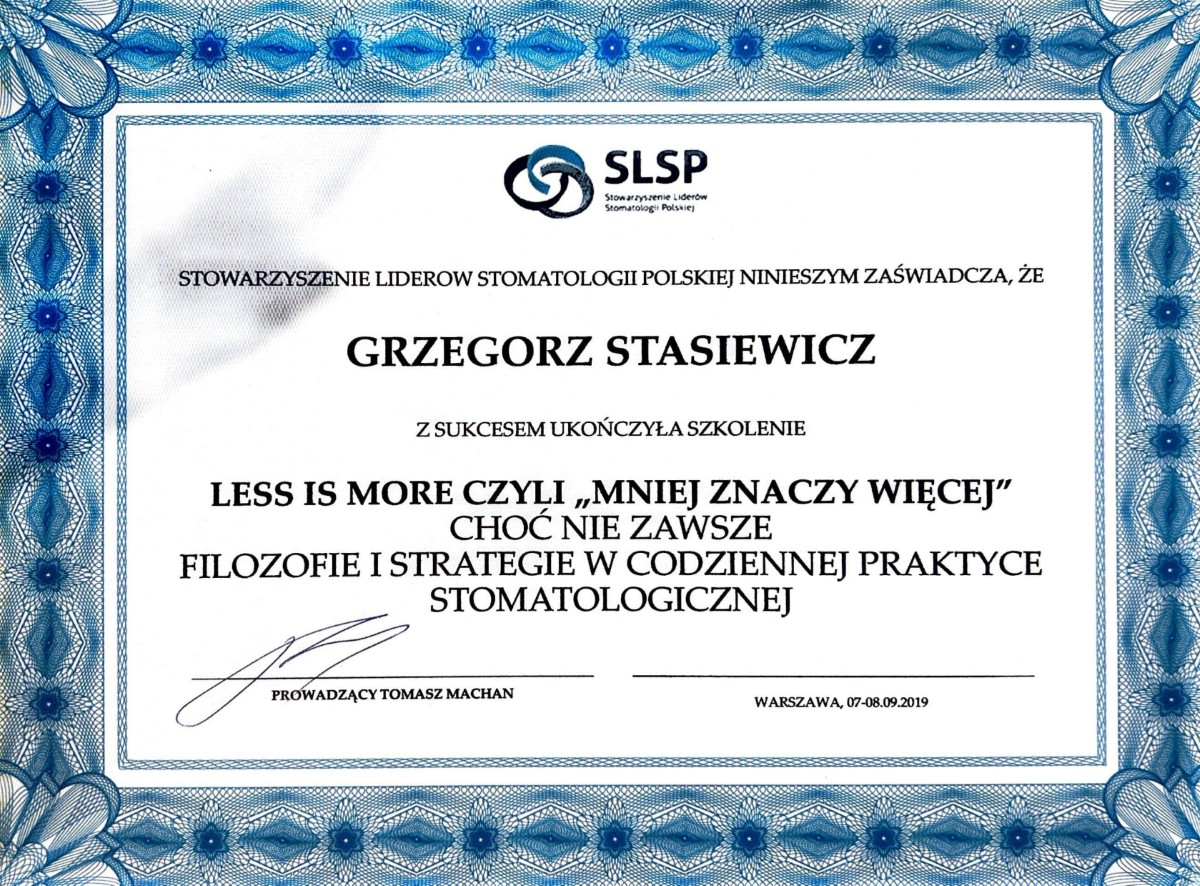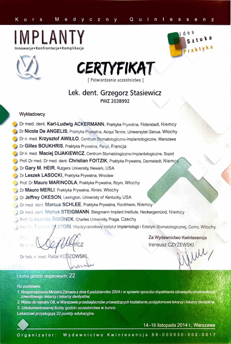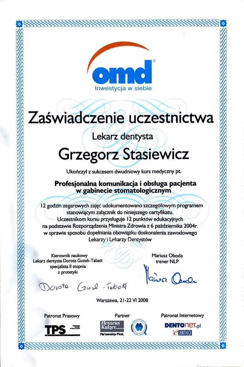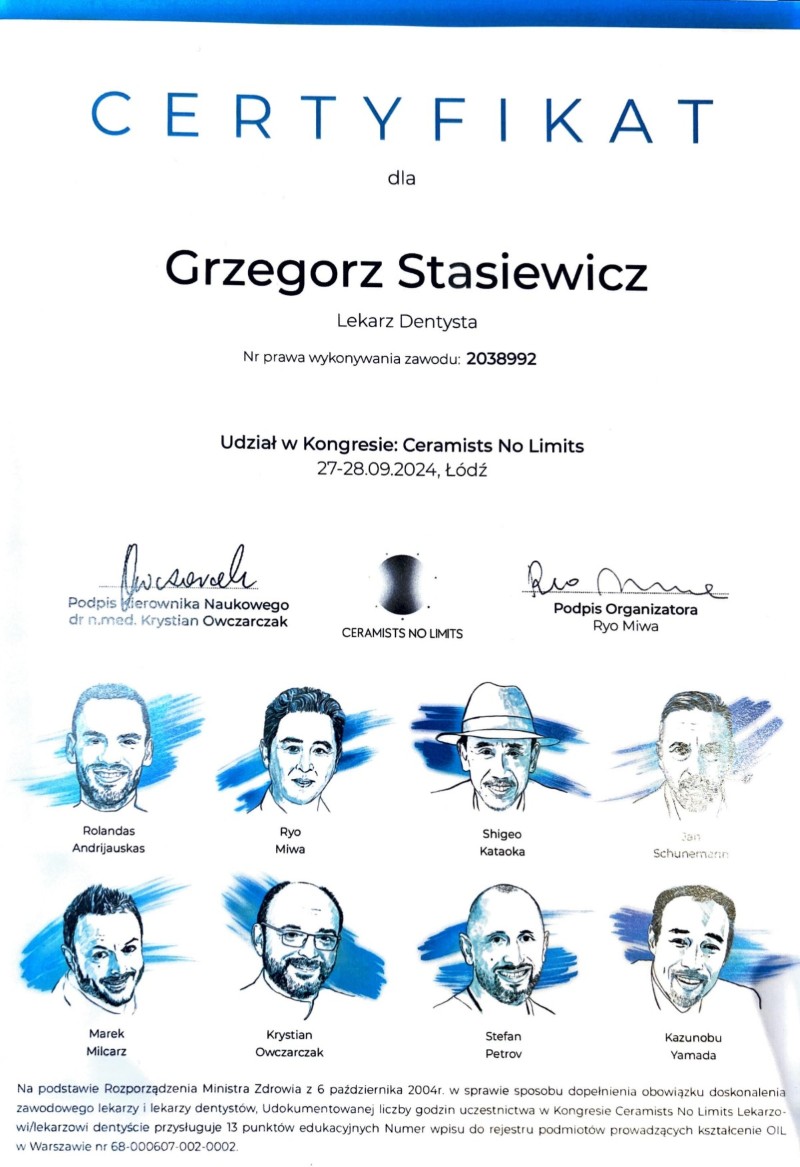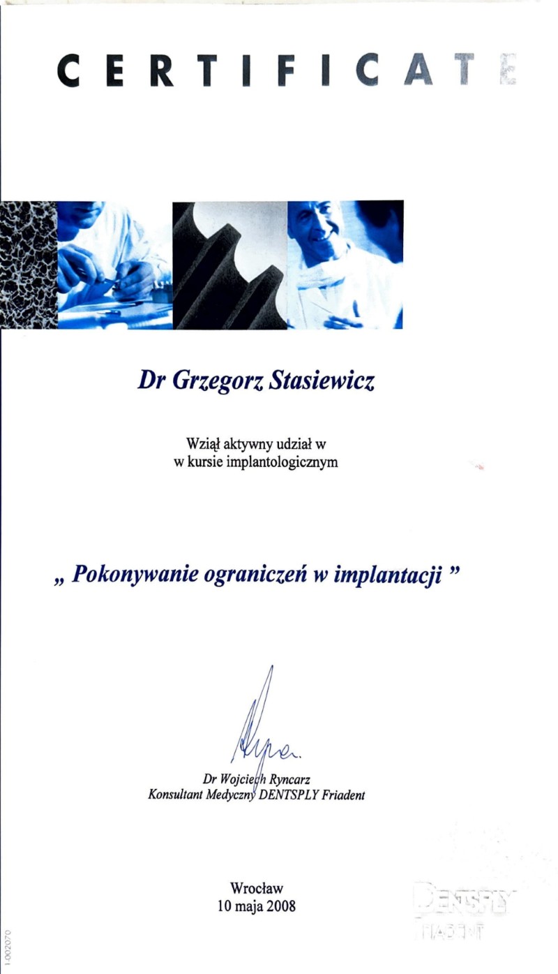 Jestem członkiem towarzystw chirurgii stomatologicznej oraz wielu grup dyskusyjnych zrzeszających chirurgów stomatologicznych, pozwalających na bieżąco aktualizować najwyższe standardy w chirurgii jamy ustnej.