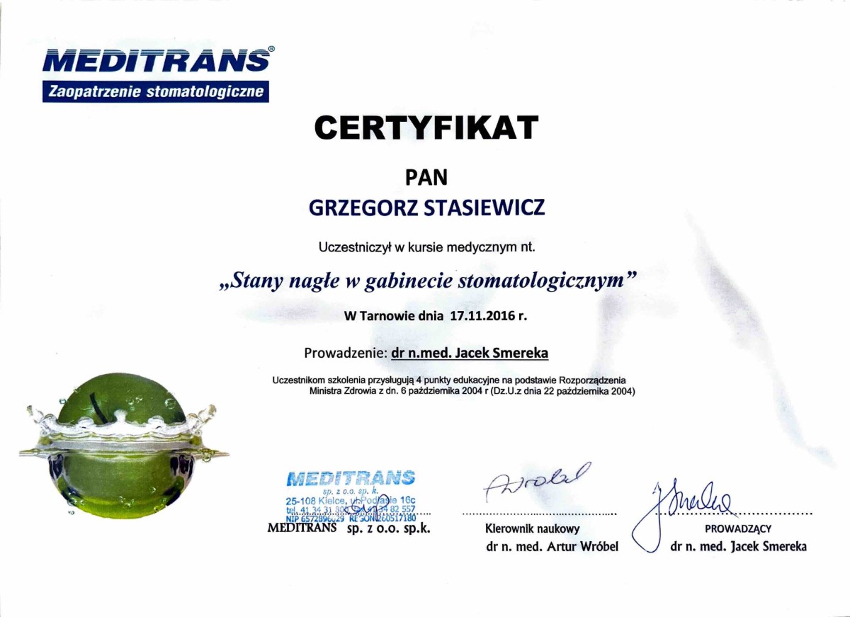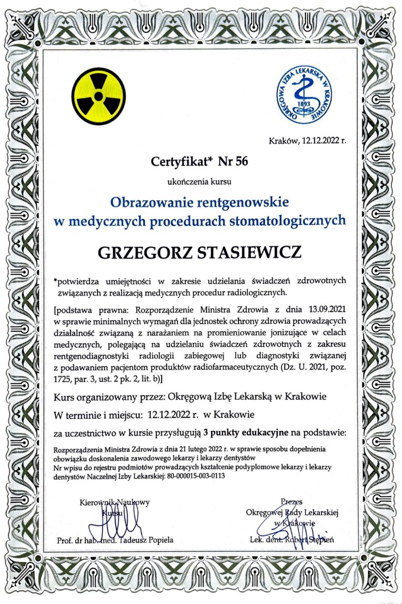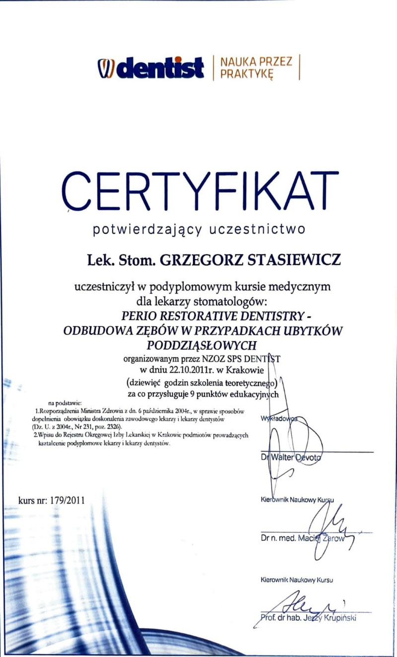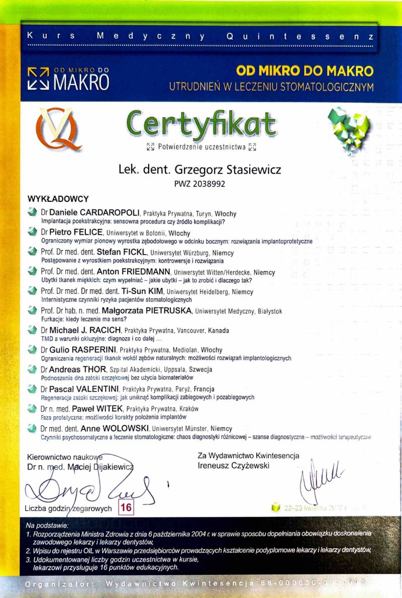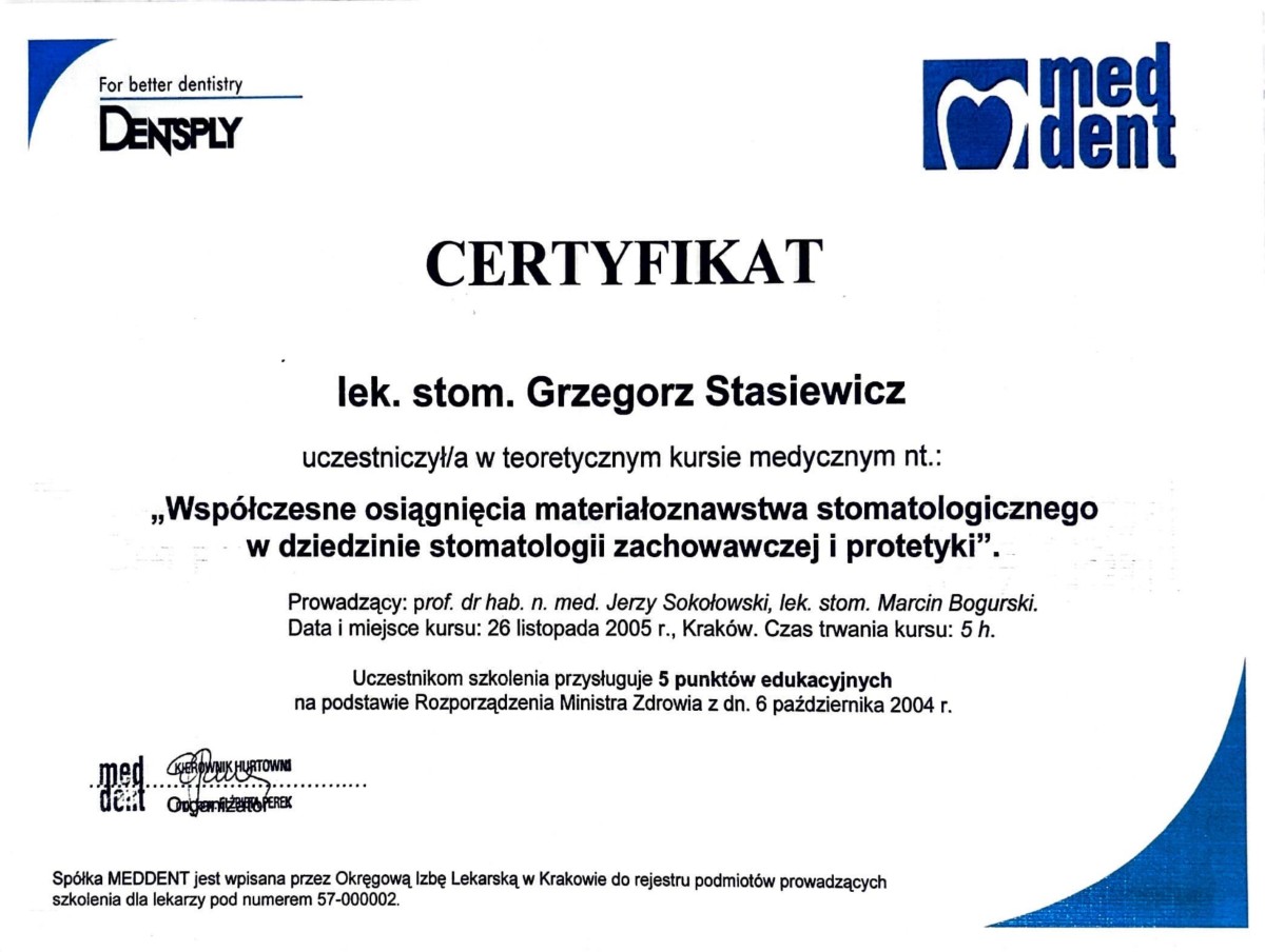 Jestem członkiem towarzystw chirurgii stomatologicznej oraz wielu grup dyskusyjnych zrzeszających chirurgów stomatologicznych, pozwalających na bieżąco aktualizować najwyższe standardy w chirurgii jamy ustnej.