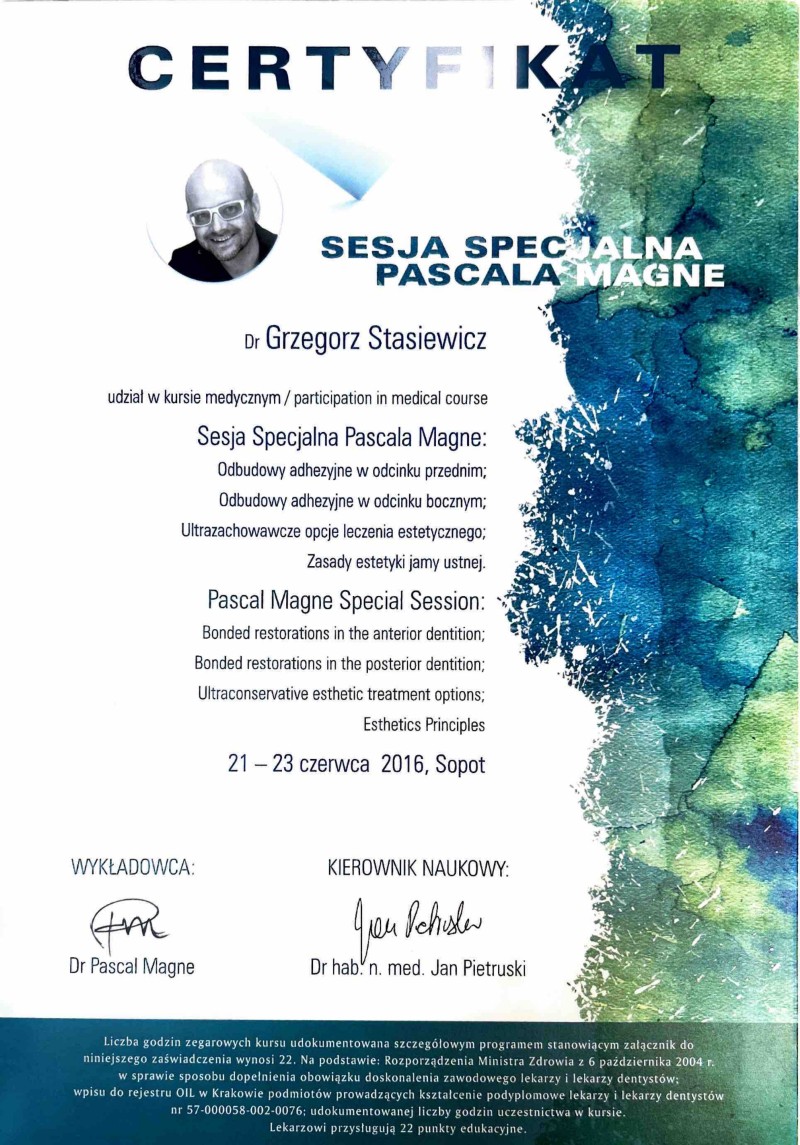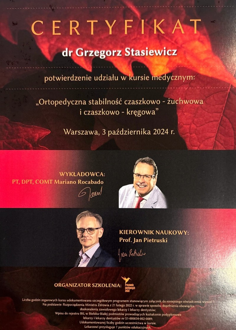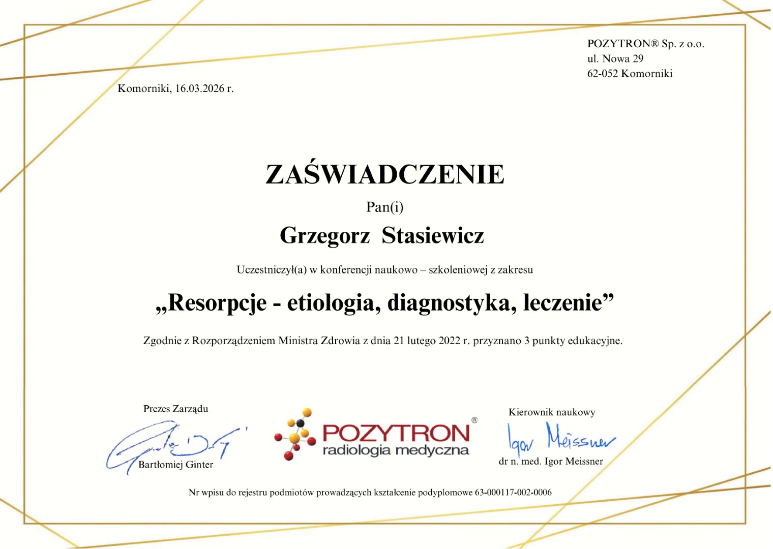 Uczestniczyłem w kilkudziesięciu kursach z zakresu ortodoncji, periodontologii i stomatologii ogólnej oraz brałem udział w licznych konferencjach o tematyce ortodoncji i mikrochirurgii ortodontycznej. Podczas czteroletniej specjalizacji oraz poprzez udziału w szkoleniach specjalistycznych, zdobyłem wiedzę i doświadczenie potrzebne w prowadzeniu różnorodnych przypadków klinicznych. Jestem również autorem kilku publikacji w czasopismach medycznych.
